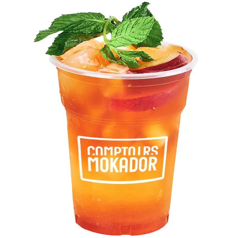 SUNSHINE MOJITO est une boisson pétillante, enrichie de purée d’abricot, purée de pêche, gingembre et citron. Orné de menthe fraîche et de tranches d’abricot et de pêche, il offre une expérience rafraîchissante et fruitée.